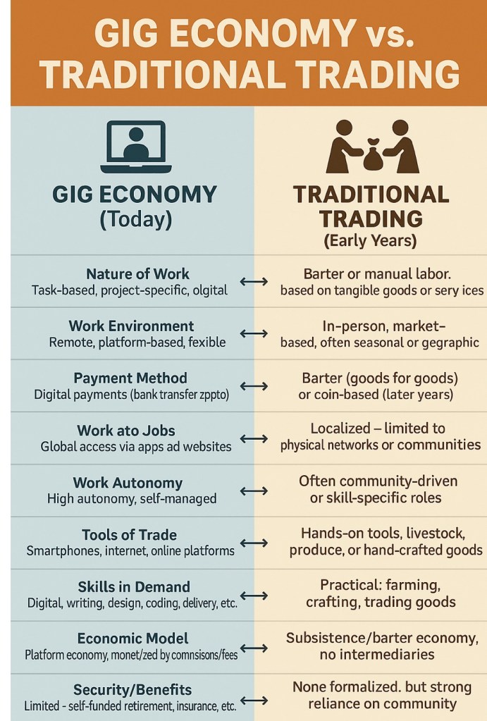 Our concept of work has transformed dramatically—from the age-old barter systems and in-person trading to today’s digital gig economy. As technology reshapes our world, understanding the evolution of labor not only helps us appreciate our past but also guides us in navigating our future. In this post, we compare the traditional trading methods of early societies with the modern landscape of freelance work and gig jobs.