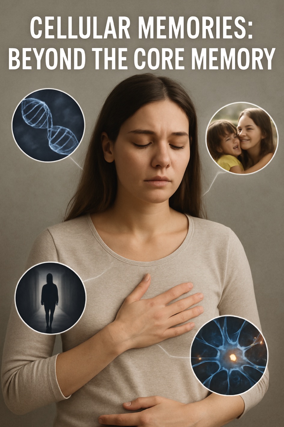 Core memories are consciously accessible, emotionally loaded events stored in our brain’s memory centers—like the hippocampus or amygdala. Cellular memory, on the other hand, is more subconscious. It doesn’t always come as thoughts or images. Instead, it may emerge as: